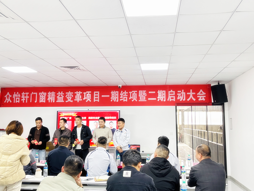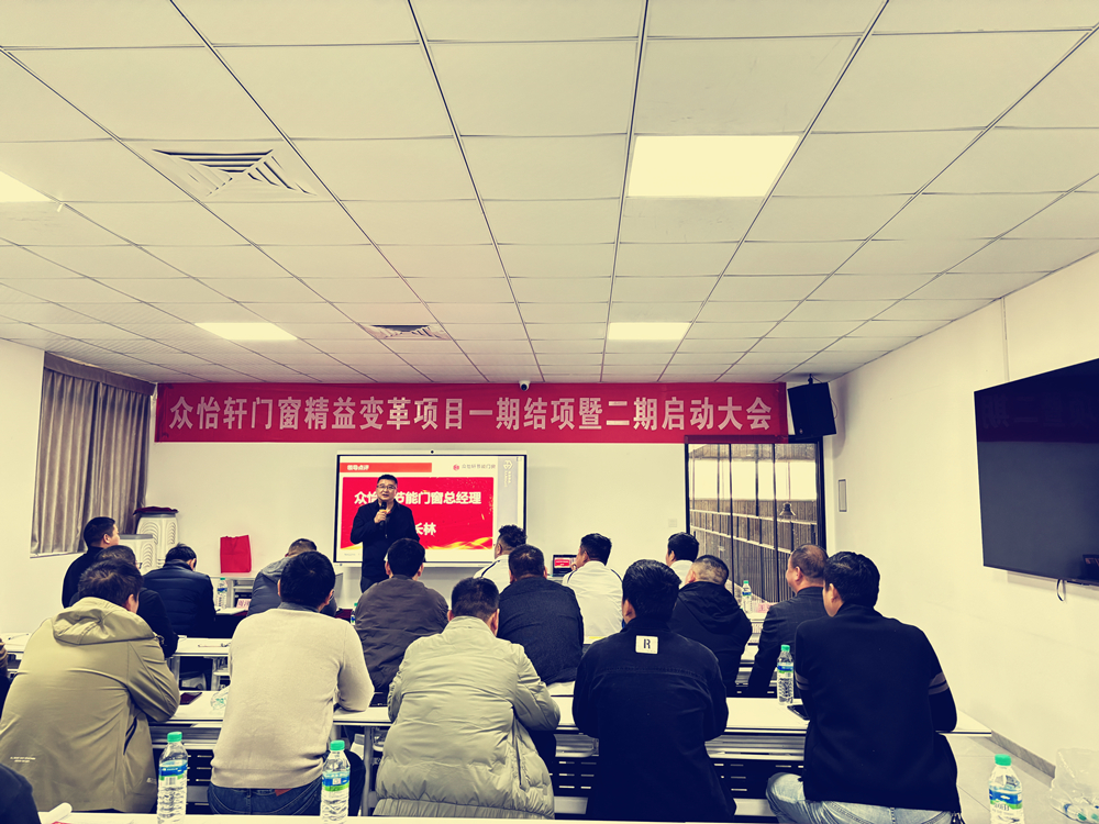 近日,江西众怡轩门窗有限公司精益管理一期结项暨二期启动大会隆重举行。公司董事长、高层管理团队、各部门骨干及合作精益咨询团队齐聚一堂,复盘一期成效、部署二期规划,开启精益管理进阶新征程。