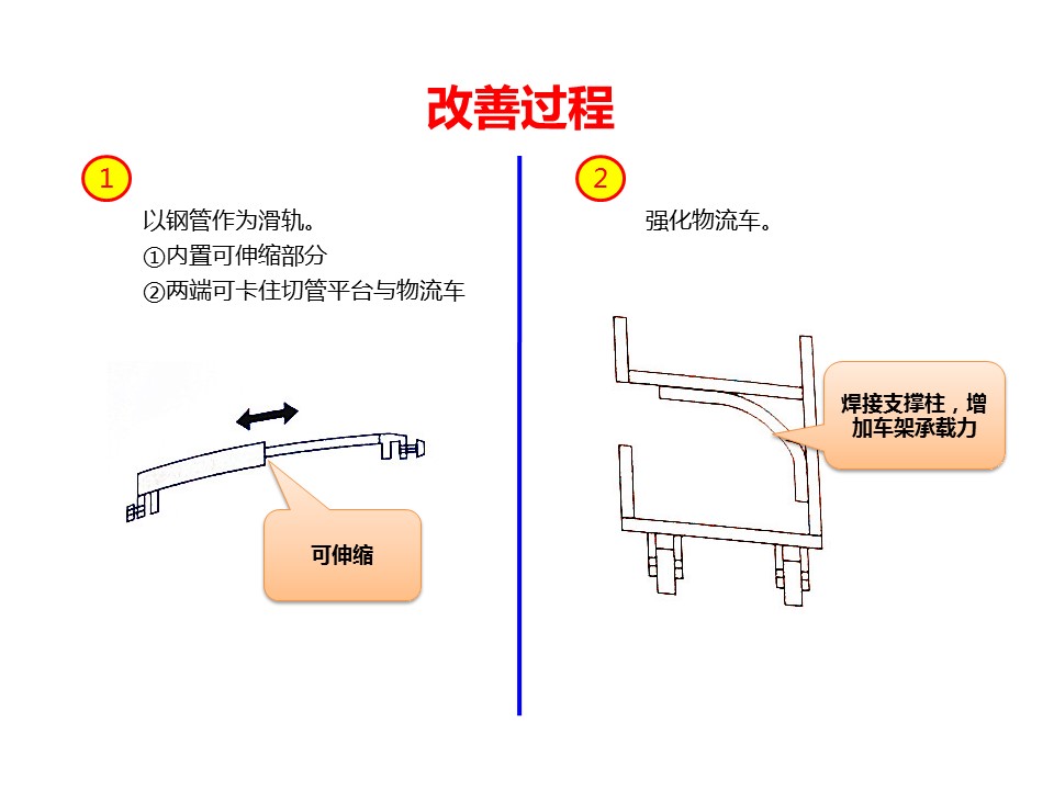 问题描述:作业员将切割完的钢管转移到物流车上,完全用手工,费体力,效率低。每日搬运量2吨以上。