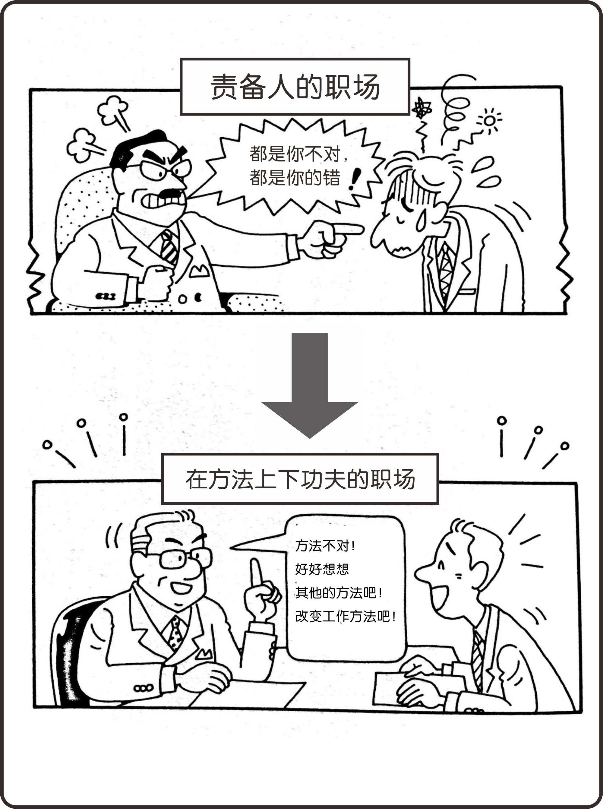 相比之下,没有具体事例、或是事例很少的职场中,“不责备人,在方法上下功夫”就只是一句空话而已。